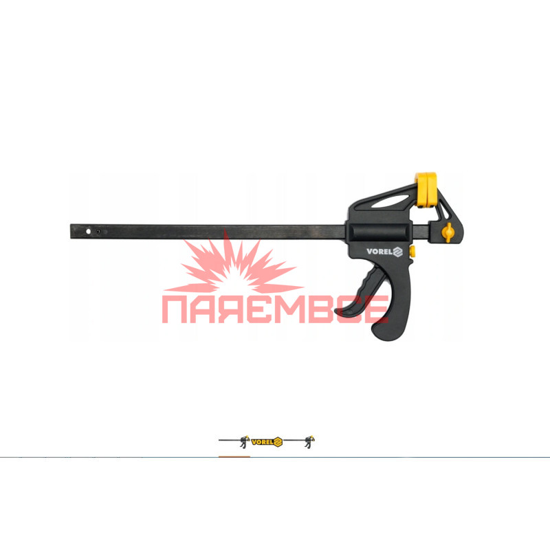 VOREL 38407 - Швидкознімний столярний затискач. Дозволяє точно працювати однією рукою. Ефективний механізм затиску та ковзання гарантує паралельну роботу губок.