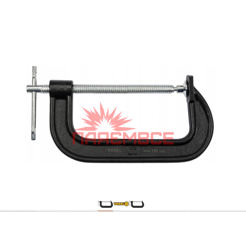 Струбцина столярна C-подібна (глибока) кована затискний інструмент столярний тип C VOREL 38434 150 мм 6"