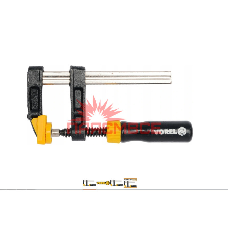 Струбцина столярна F-подібна затискний інструмент столярний тип F VOREL 37115 1500*120 мм