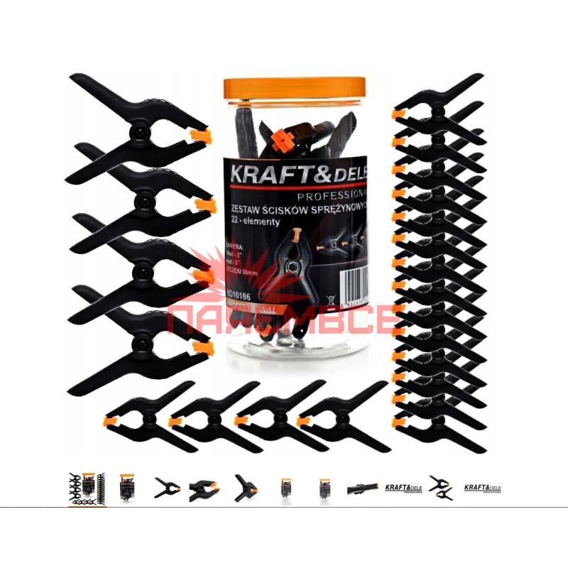 - Струбцина затискний інструмент набір пружинних затискачів KRAFT&DELE KD10186 22 штуки - 4x 3 "/ 18x 2"