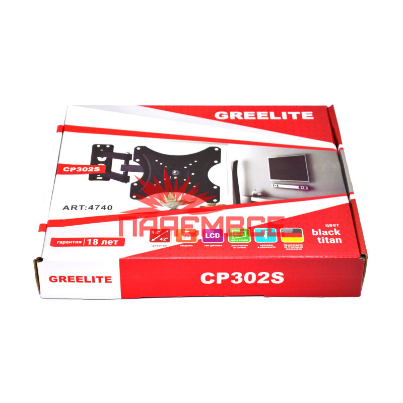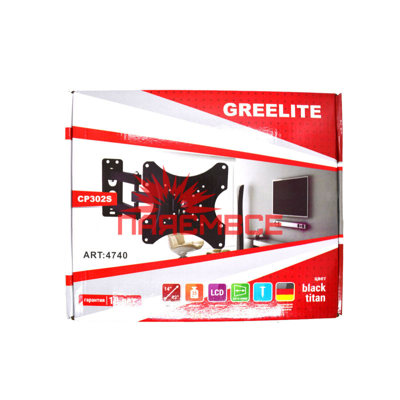 Fastening (bracket) GREELITE 4740 (CP302S) 14"-42" for television, monitor TV LED LCD OLED PLASMA wall inclined-rotary adjustable VESA 50x50~200x200 mm 35 kg