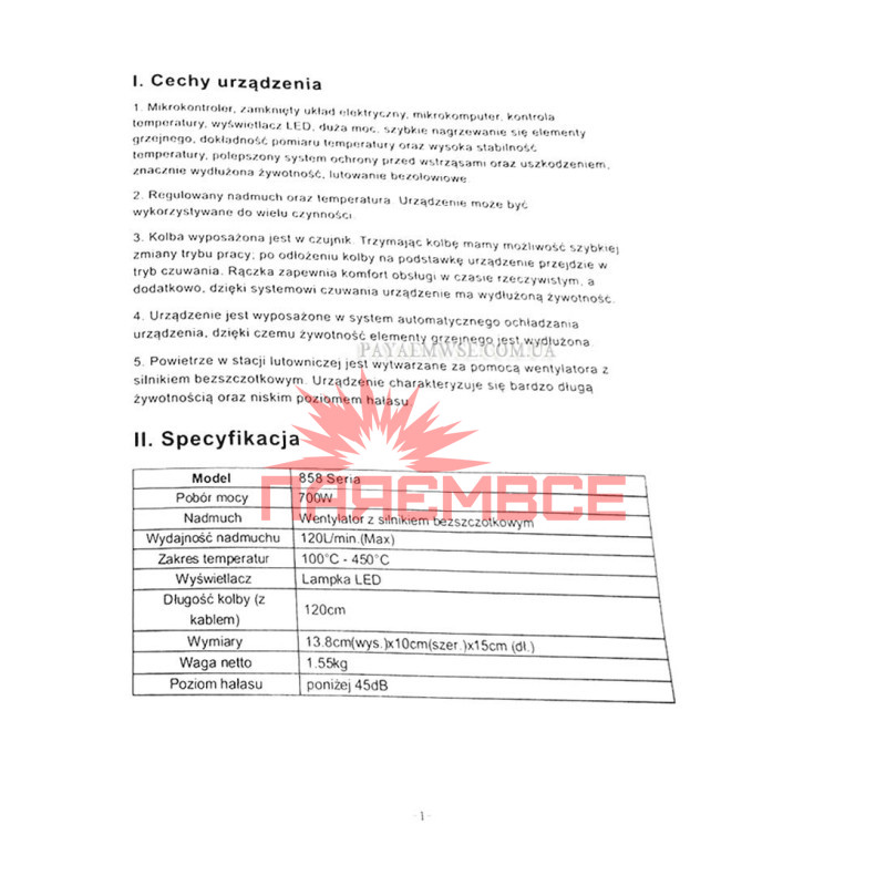 ТЕРМОПОВІТРЯНА ПАЯЛЬНА СТАНЦІЯ 1|1: ФЕН (ТЕРМОФЕН/ПАЯЛЬНИЙ ФЕН)
