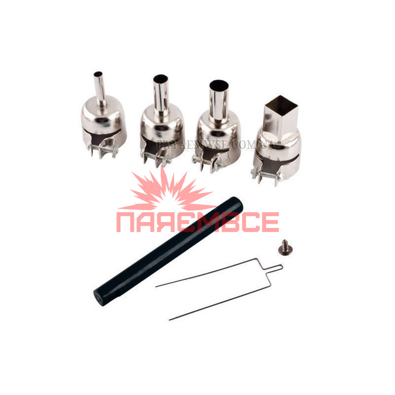 У нас завжди можна докупити до неї запасні елементи: запасний фен, запасний паяльник, нагрівальні елементи, сопла, жала, щупи, аксесуари, інші комплектуючі