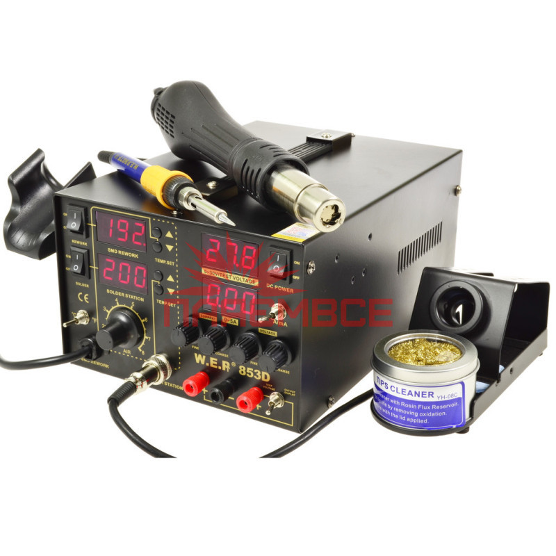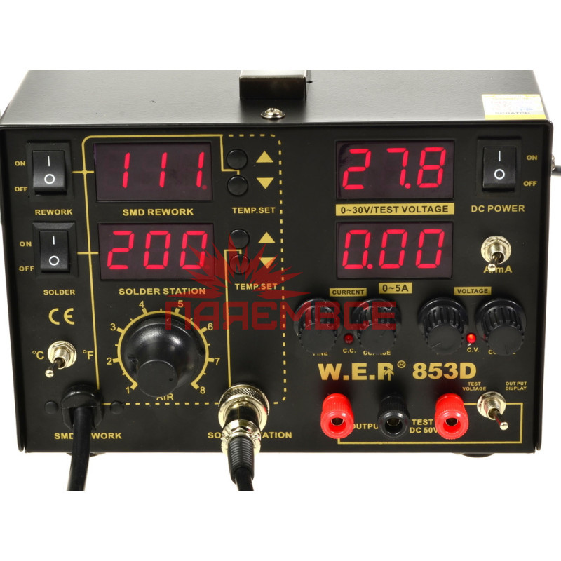 Термоповітряна паяльна станція 3/1 W. E. P 853D5A фен+паяльник+лабораторний блок живлення