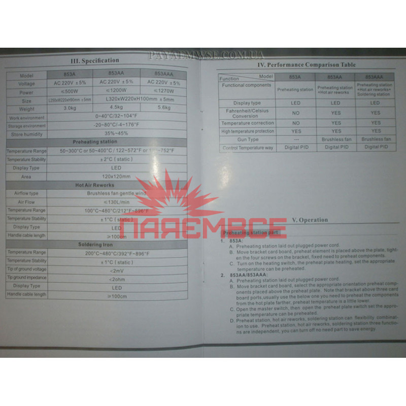 У нас завжди можна докупити до неї запасні елементи: запасний фен, запасний паяльник, нагрівальні елементи, сопла, жала, щупи, аксесуари, інші комплектуючі