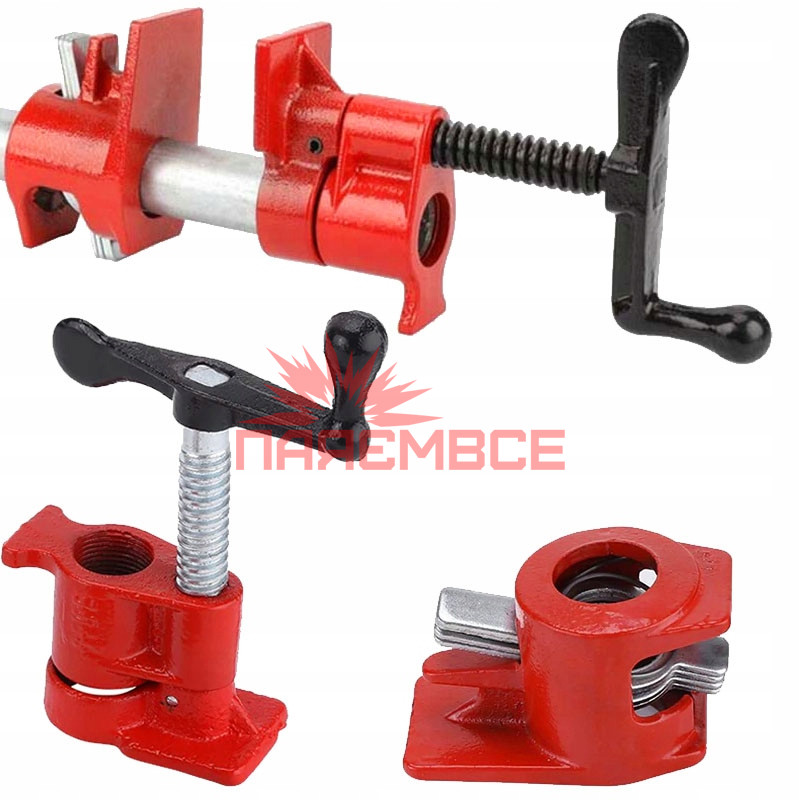 Струбцина трубная, столярная, зажимной инструмент 3/4" FALON TECH FT1034 - состоит из двух элементов: зажимного наконечника с винтом и блокирующих пластин (барьеров)
