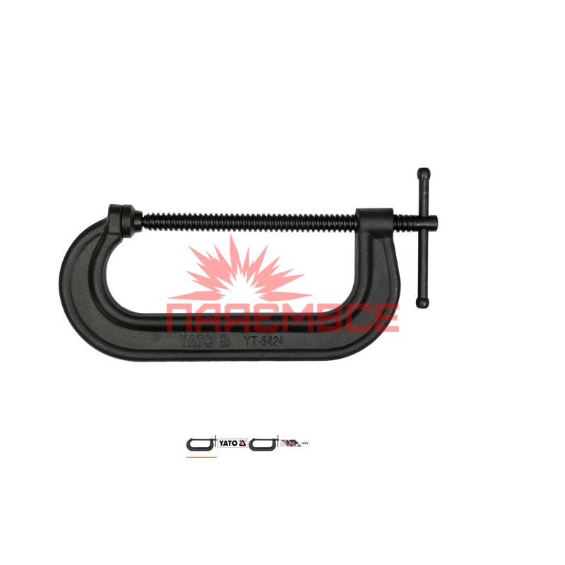 Струбцина столярна C-подібна (глибока) кована затискний інструмент столярний тип C YATO YT-6424 200 мм 8"