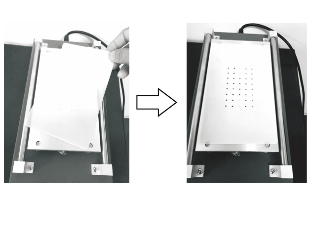 - Коли досягнуто встановлену температуру, помістіть екран на силіконовій подушці та ввімкніть вакуумний захоплення, встановлений у пристрої