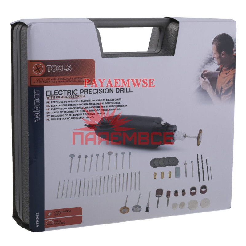 - Міні дриль гравер мініатюрна дриль VELLEMAN VTHD02 +62 Насадки +Кейс