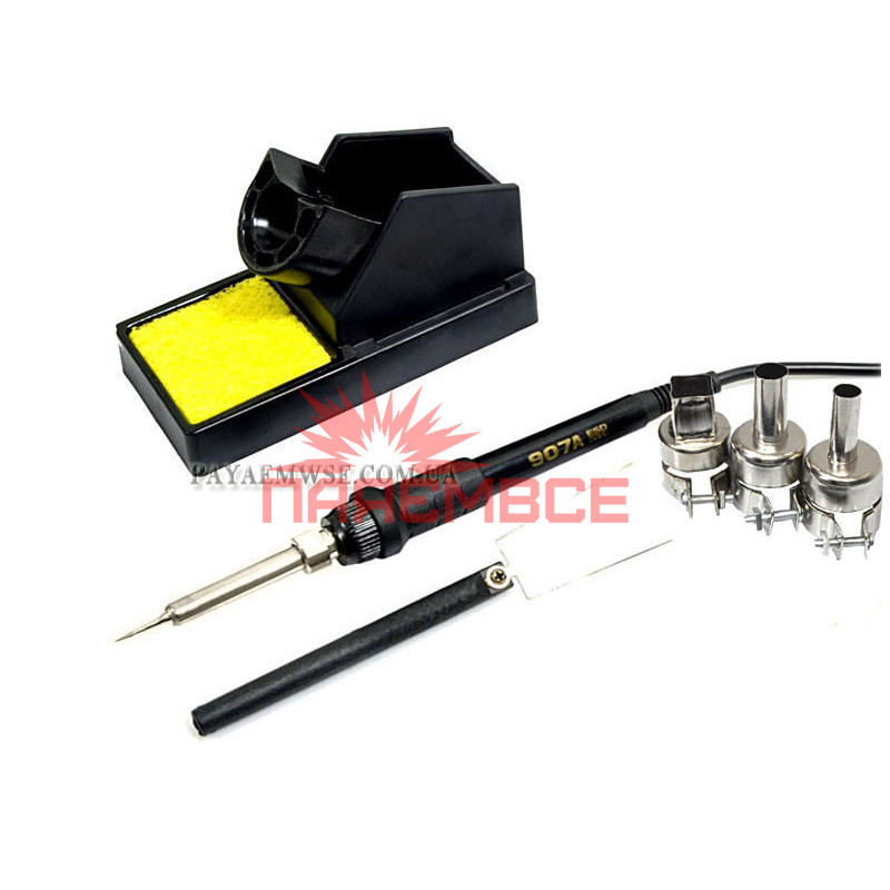 У нас завжди можна докупити до неї запасні елементи: запасний термофен, запасний паяльник, нагрівальні елементи, сопла, жала, аксесуари, інші комплектуючі
