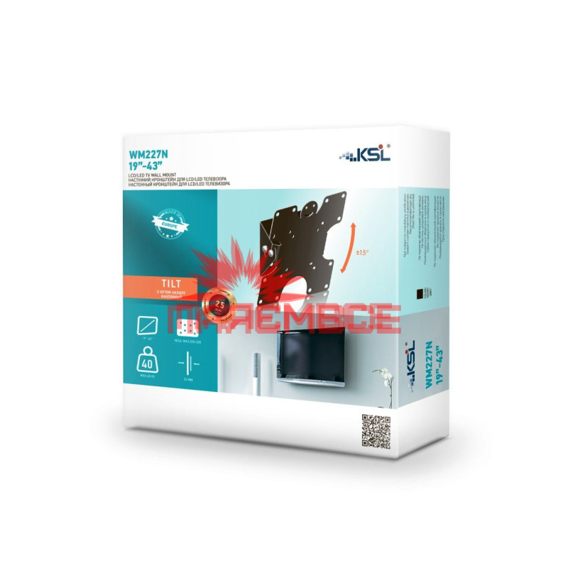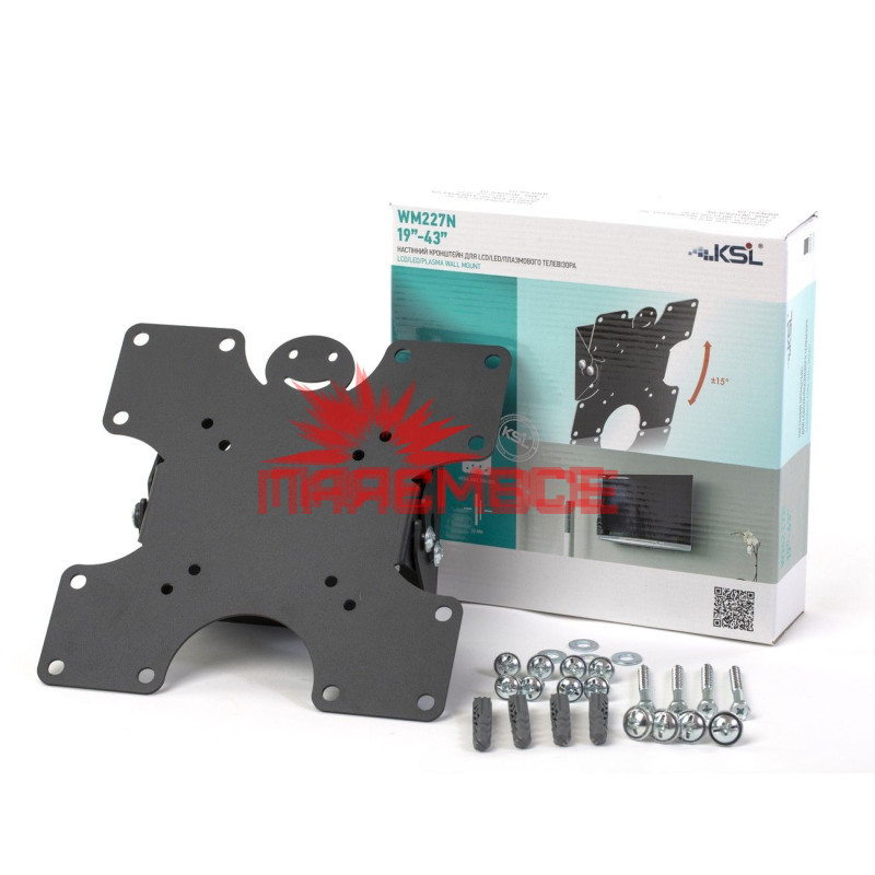 Кріплення (кронштейн) KSL WM227N 19"-43" для телевізора, монітора ТБ LED LCD OLED ПЛАЗМА настінне похиле VESA 75x75~200x200 мм 40 кг