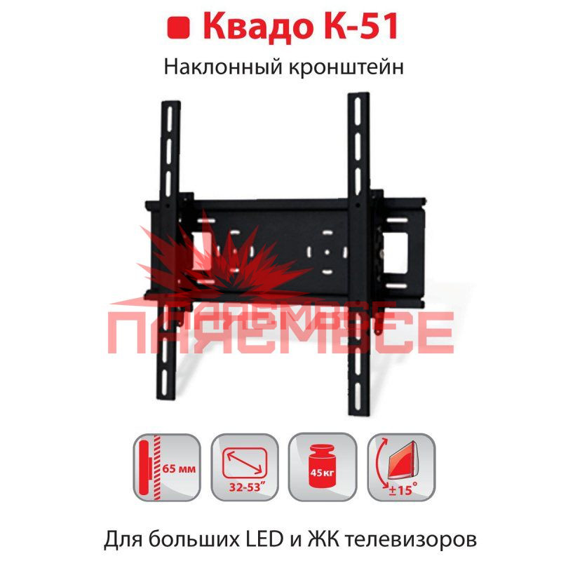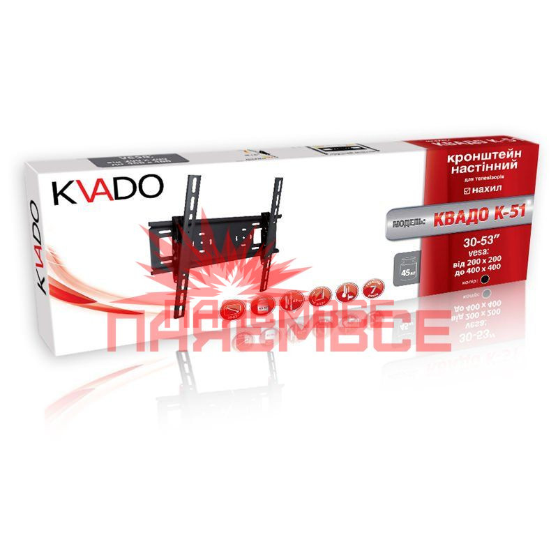 Кріплення (кронштейн) КВАДО К-51 30"-65" для телевізора, монітора ТБ LED LCD OLED ПЛАЗМА настінне похиле VESA 100x100~400x400 мм 45 кг