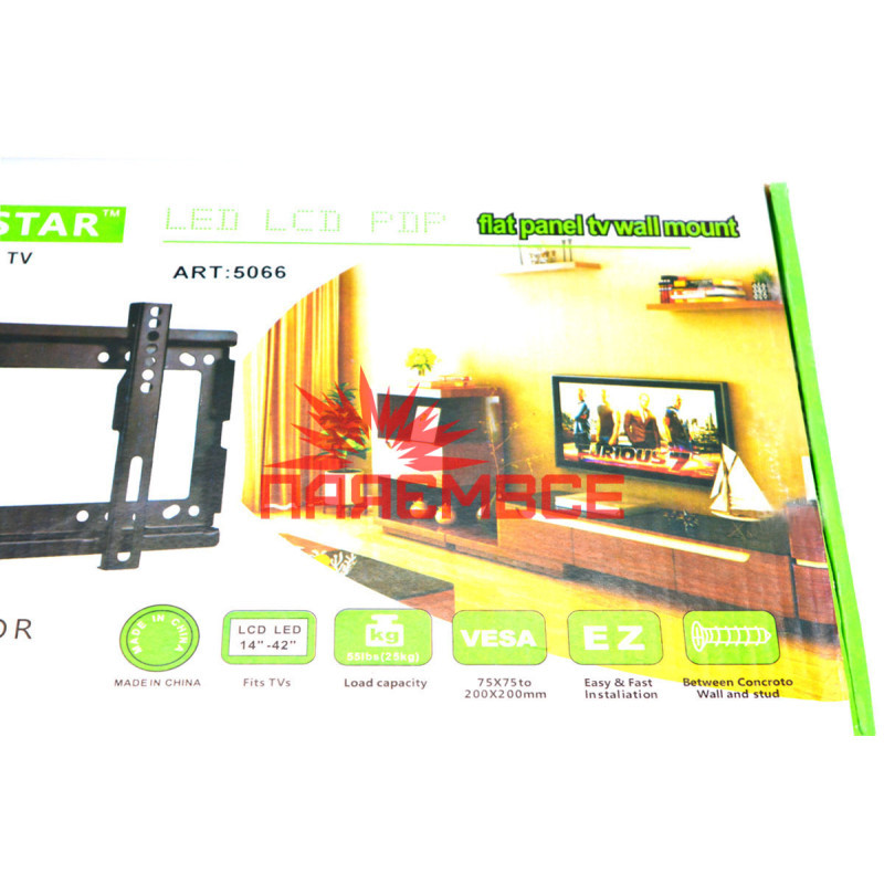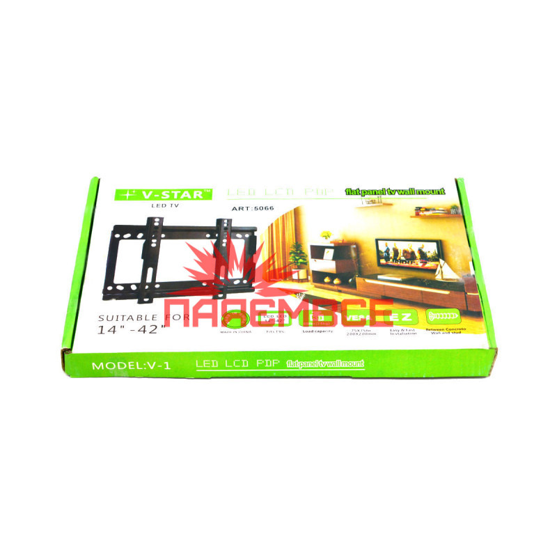 Кріплення (кронштейн) V-STAR 5066 (V-1) 14"-42" для телевізора, монітора ТБ LED LCD OLED ПЛАЗМА настінне фіксоване VESA 75x75~200x200 мм 25 кг