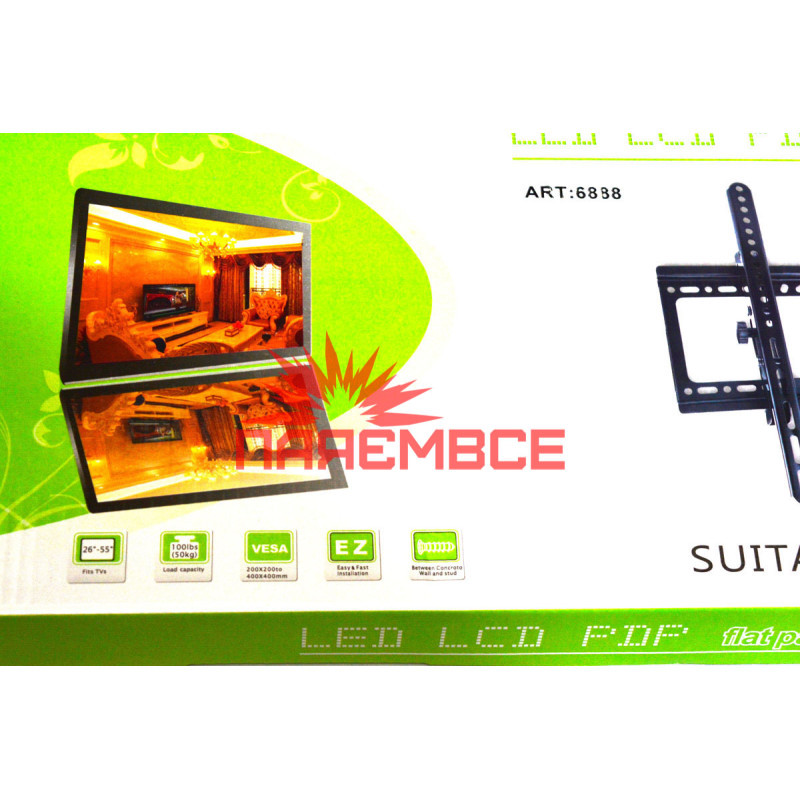 Кріплення (кронштейн) V-STAR 6888 (V-5) 26"-55" для телевізора, монітора ТБ LED LCD OLED ПЛАЗМА настінне похиле VESA 50x50~400x400 мм 50 кг